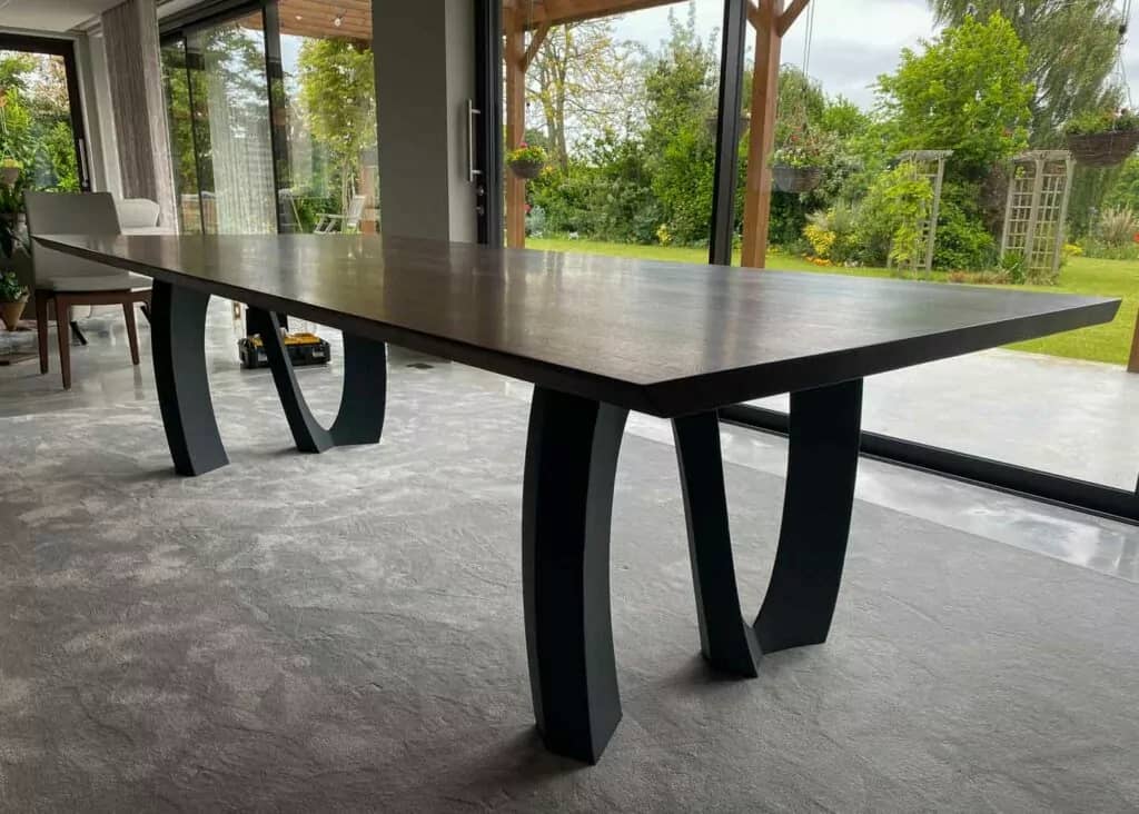 Ножки стола Африка с их плавными изгибами словно вырастают из пола, создавая впечатляющий эффект при входе в помещение. Угловатые и изогнутые контуры ножек повторяют различные текстуры столешницы, являясь искусным рукотворным отражением природных форм. Этот стол черпает вдохновение в природных очертаниях и сочетает в себе высококачественные материалы и мастерство исполнения.