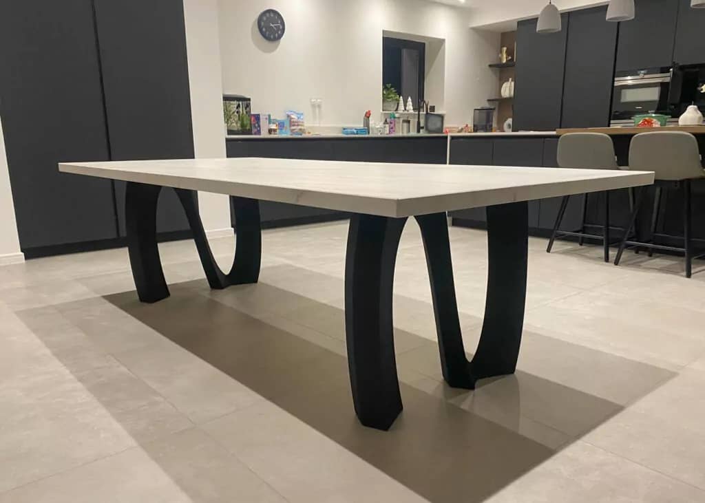 Каждый изогнутый элемент этих многогранных оснований требует ювелирной точности при изготовлении. Вся работа выполняется исключительно вручную - от сварки конструкции до тщательной полировки каждого шва с обеих сторон. Прочное порошковое покрытие связывает плавные изгибы с цветом, создавая контрастную игру теней, что делает эти основания поистине уникальными.