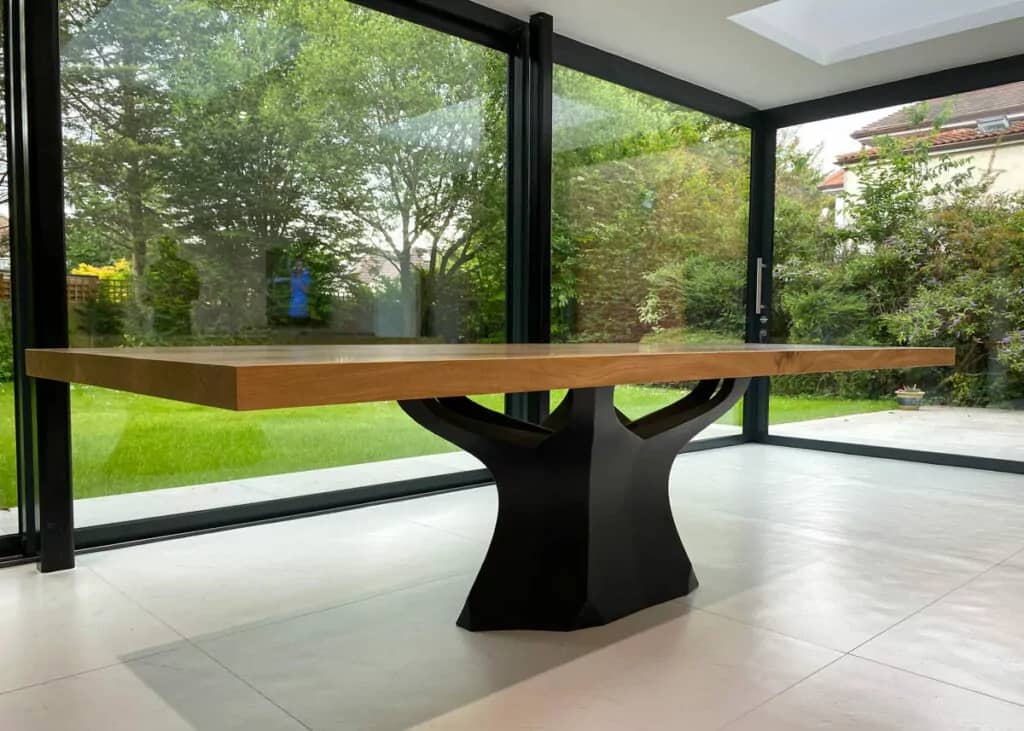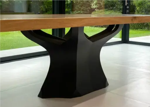Каждый изогнутый элемент этих многогранных оснований требует ювелирной точности при изготовлении. Вся работа выполняется исключительно вручную - от сварки конструкции до тщательной полировки каждого шва с обеих сторон. Прочное порошковое покрытие связывает плавные изгибы с цветом, создавая контрастную игру теней, что делает эти основания поистине уникальными.