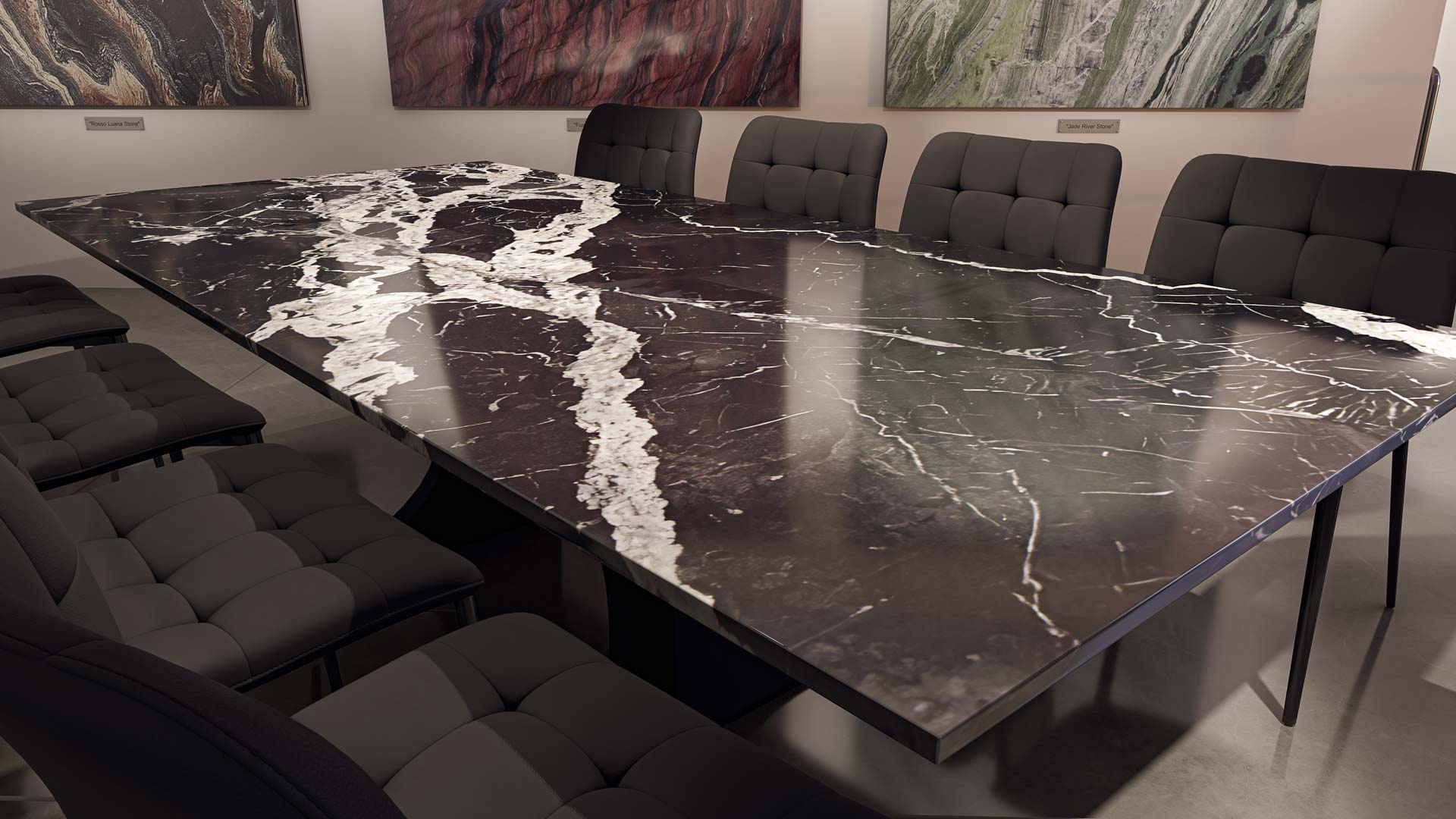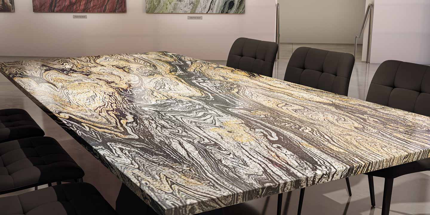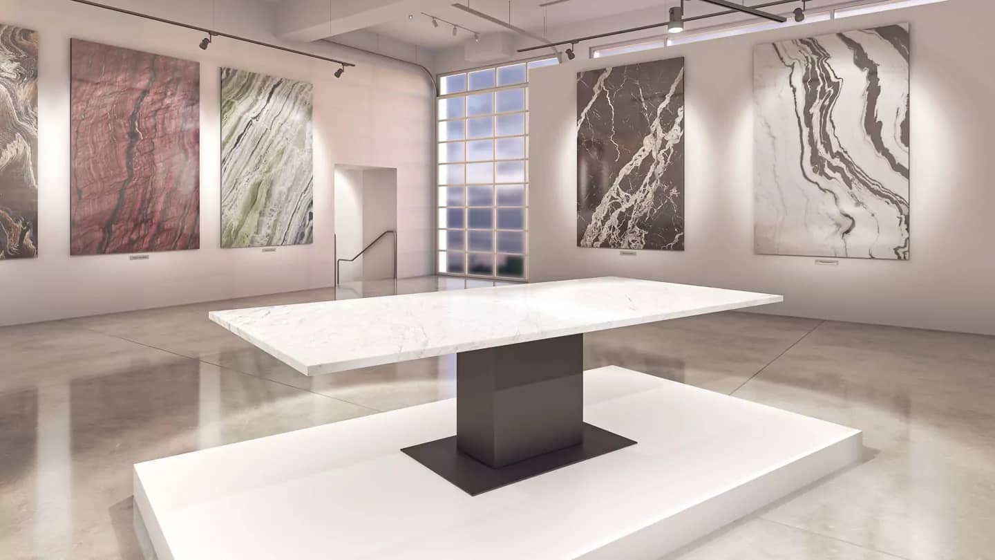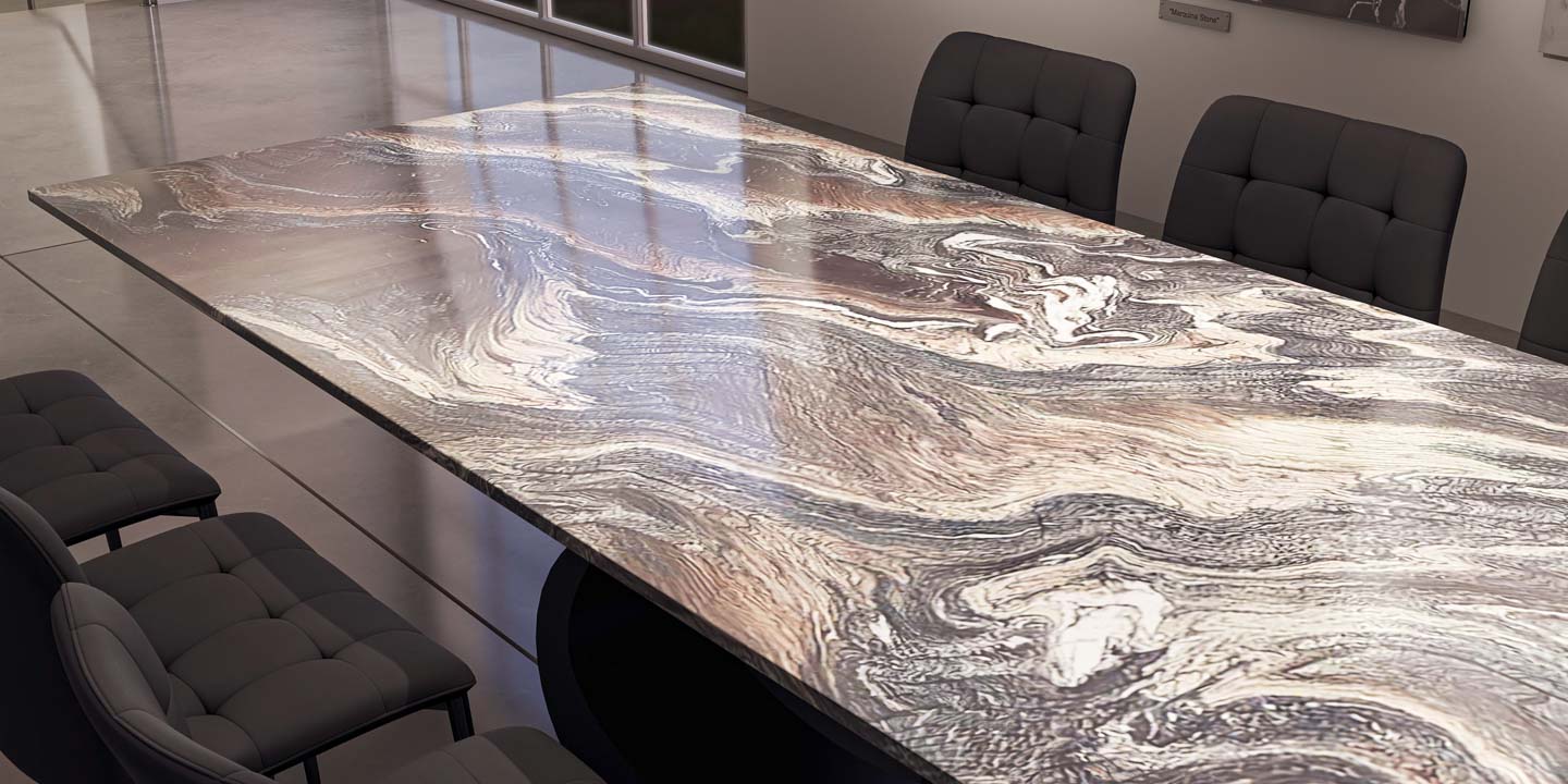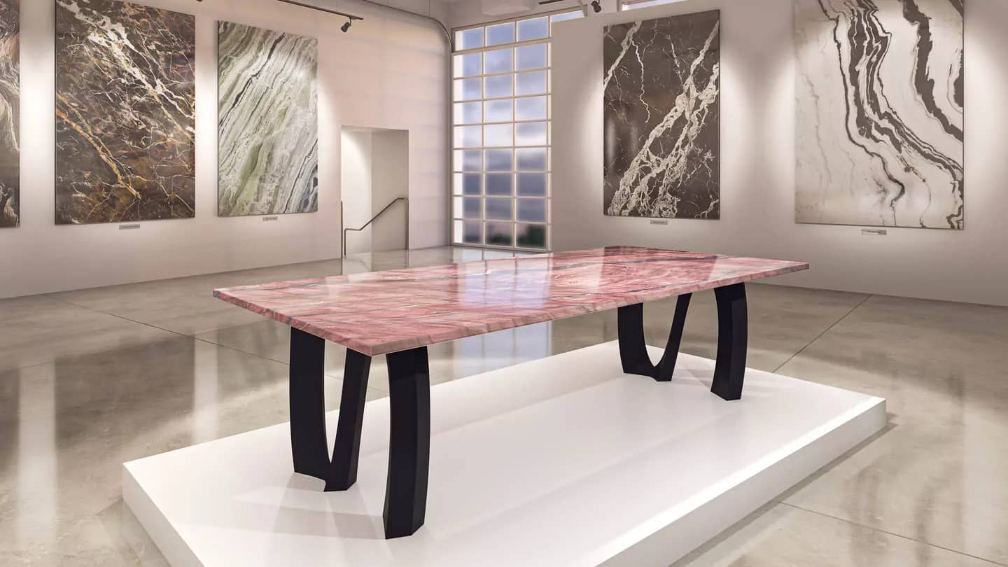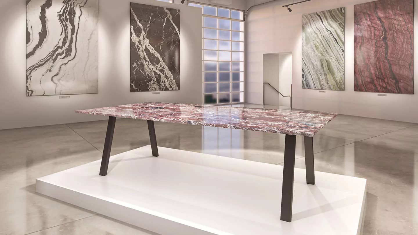 Наша тщательно отобранная коллекция включает в себя прекрасный ассортимент мраморных, гранитных, кварцевых и полудрагоценных каменных плит, готовых к использованию с любым из наших оснований для столов, чтобы они соответствовали вашему пространству и отражали ваш стиль.
