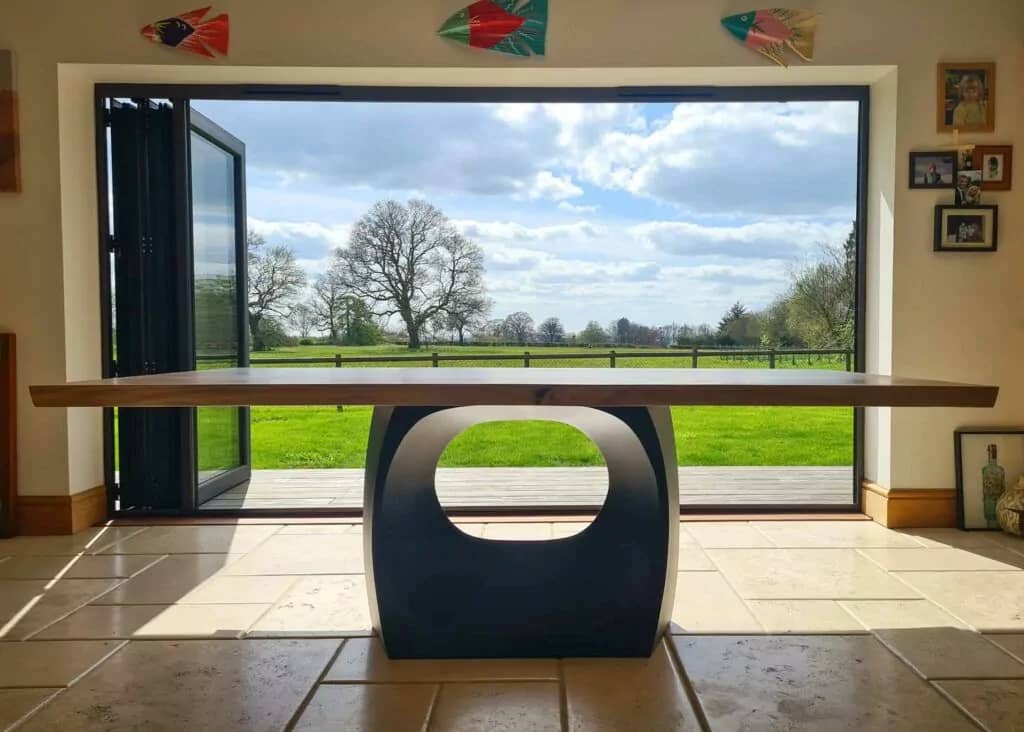 Стол Муза поражает своим креативным дизайном и великолепной эстетикой. Его отличительная черта - это мощный, но в то же время изящный овальный световой проем, проходящий через всю конструкцию. Этот дизайн вдохновлен естественными природными формами и воплощен в материалах с использованием навыков высочайшего уровня.