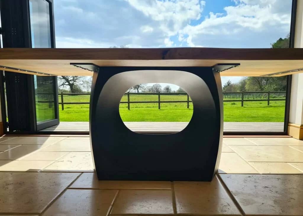 Каждый изогнутый элемент этих многогранных оснований требует ювелирной точности при изготовлении. Вся работа выполняется исключительно вручную - от сварки конструкции до тщательной полировки каждого шва с обеих сторон. Прочное порошковое покрытие связывает плавные изгибы с цветом, создавая контрастную игру теней, что делает эти основания поистине уникальными.